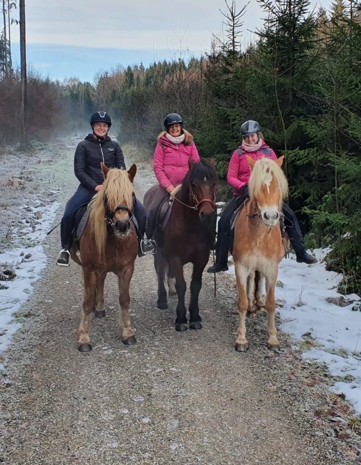 Die schon etwas Geübteren reiten in Kleingruppen oder Einzelstunden und bauen auf ihr Basiswissen auf. Hierbei wird jedoch trotz gesteigerter Anforderungen der Spaß mit dem Partner Pferd nie aus den Augen verloren.