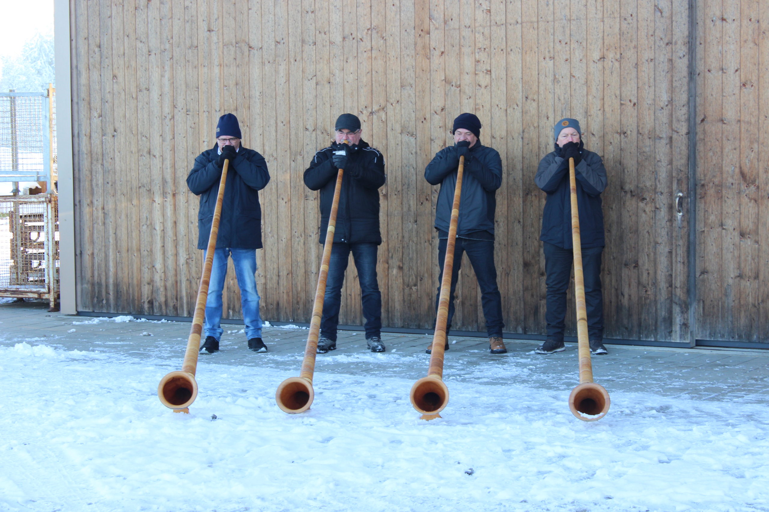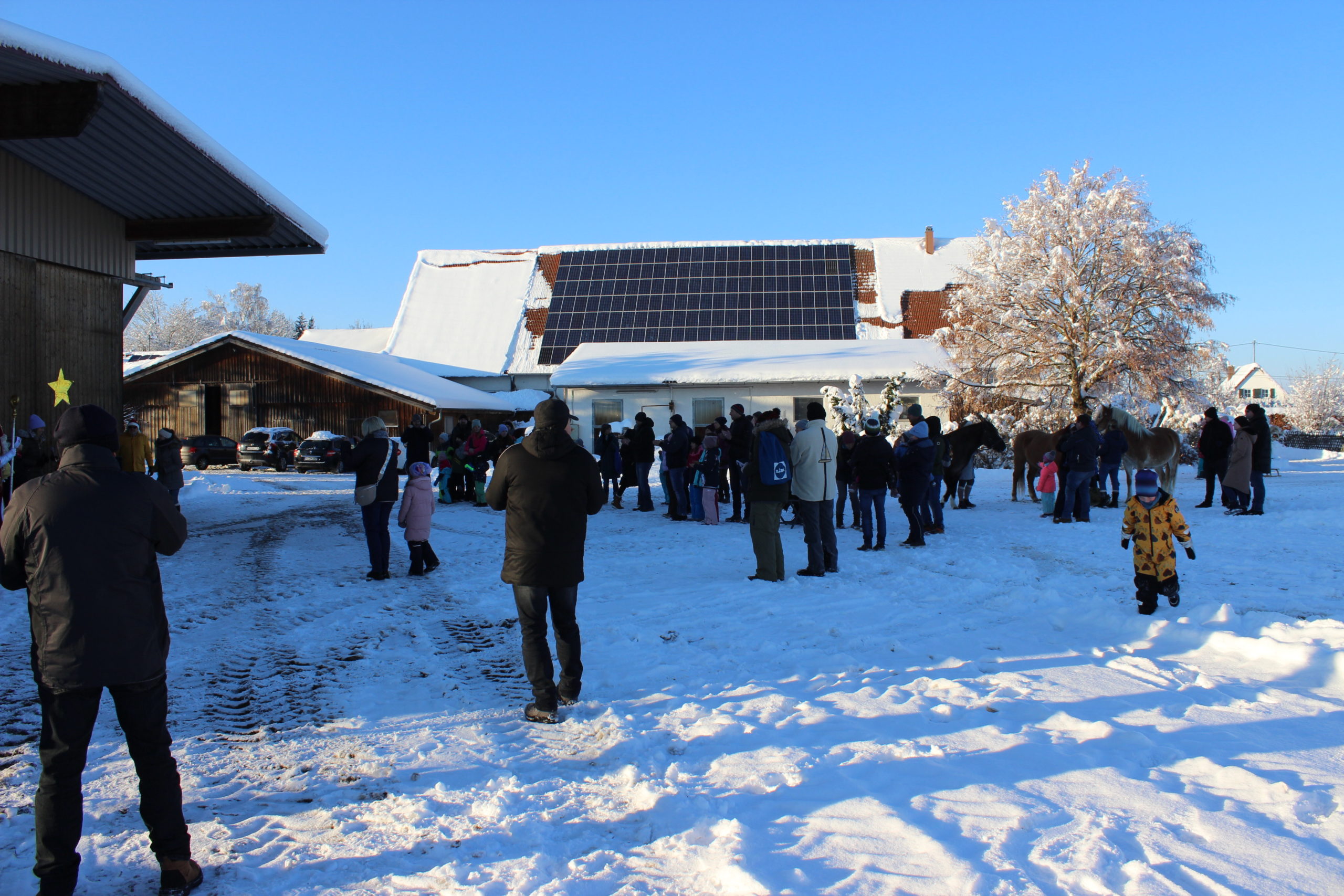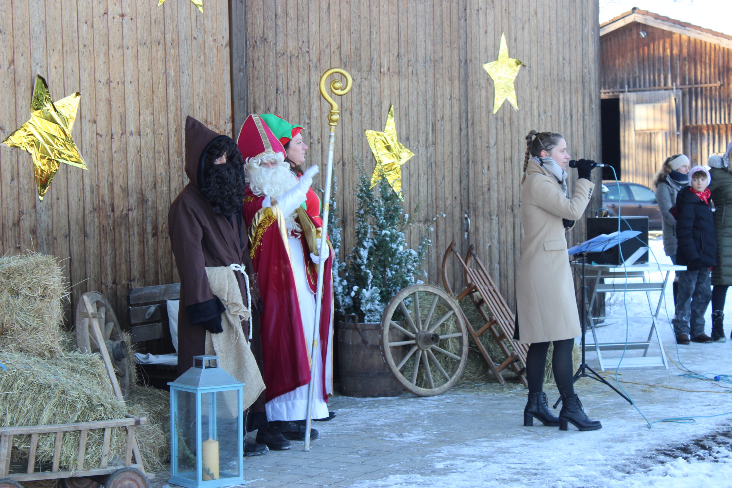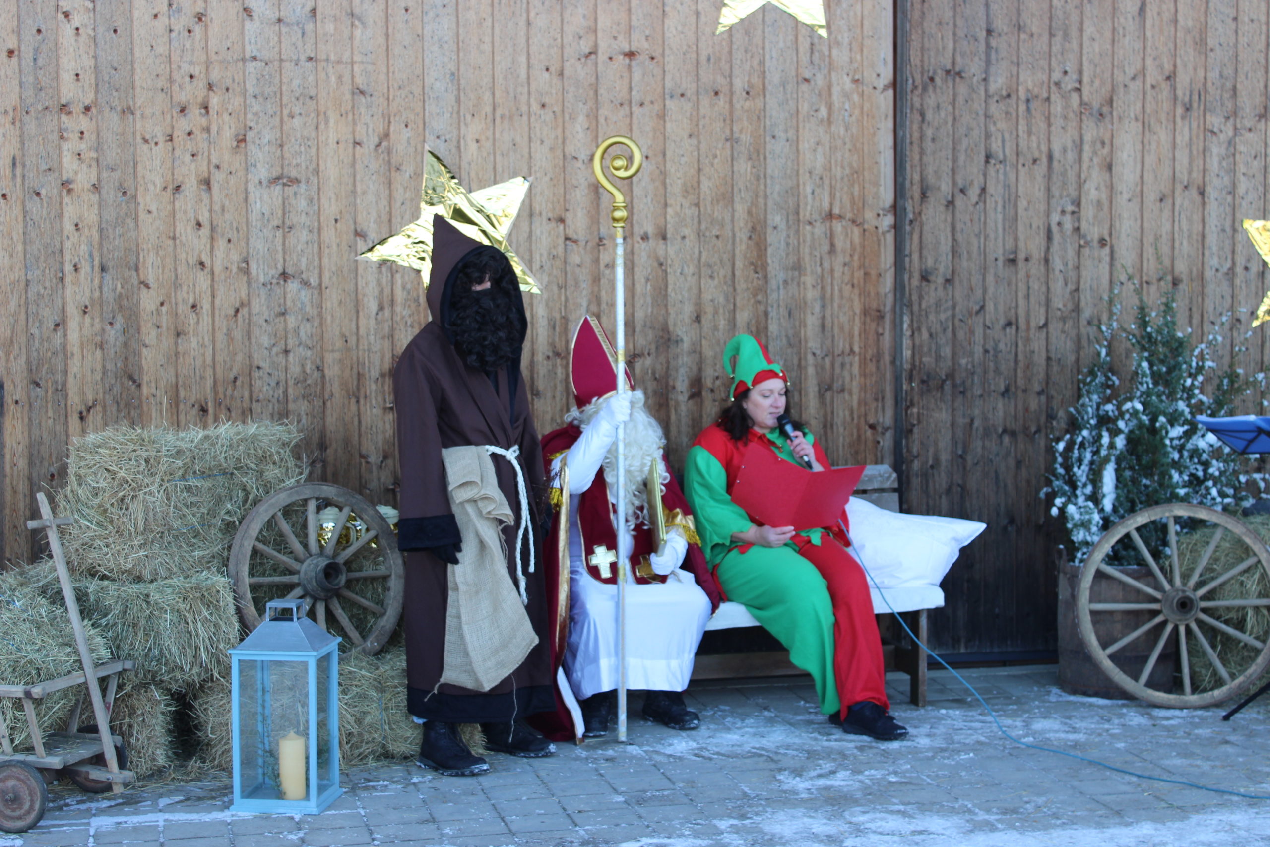 Ca. 70-80 Personen hatten sich heute Nachmittag im Ponyhof in Priemen eingefunden, um dort den St. Nikolaus mit seinem Knecht und einer Elfin zu empfangen. Musikalisch wurde alles umrahmt von *Joy of Voice*, sowie *Alphornbläsern aus Steinheim*. Die Elfin erzählte eine lange Geschichte, bei der alle Kinder mit großen Ohren hinhorchten